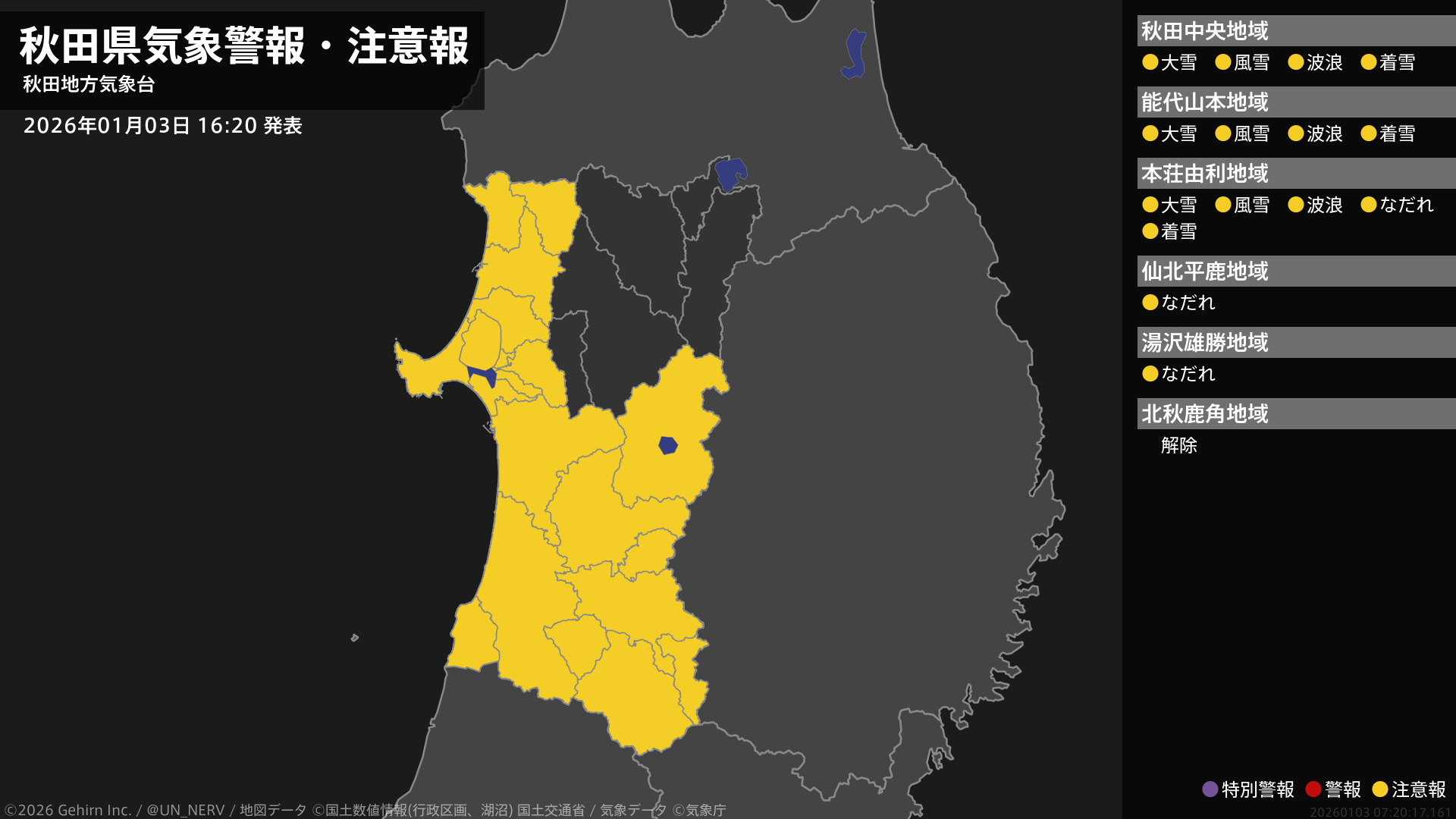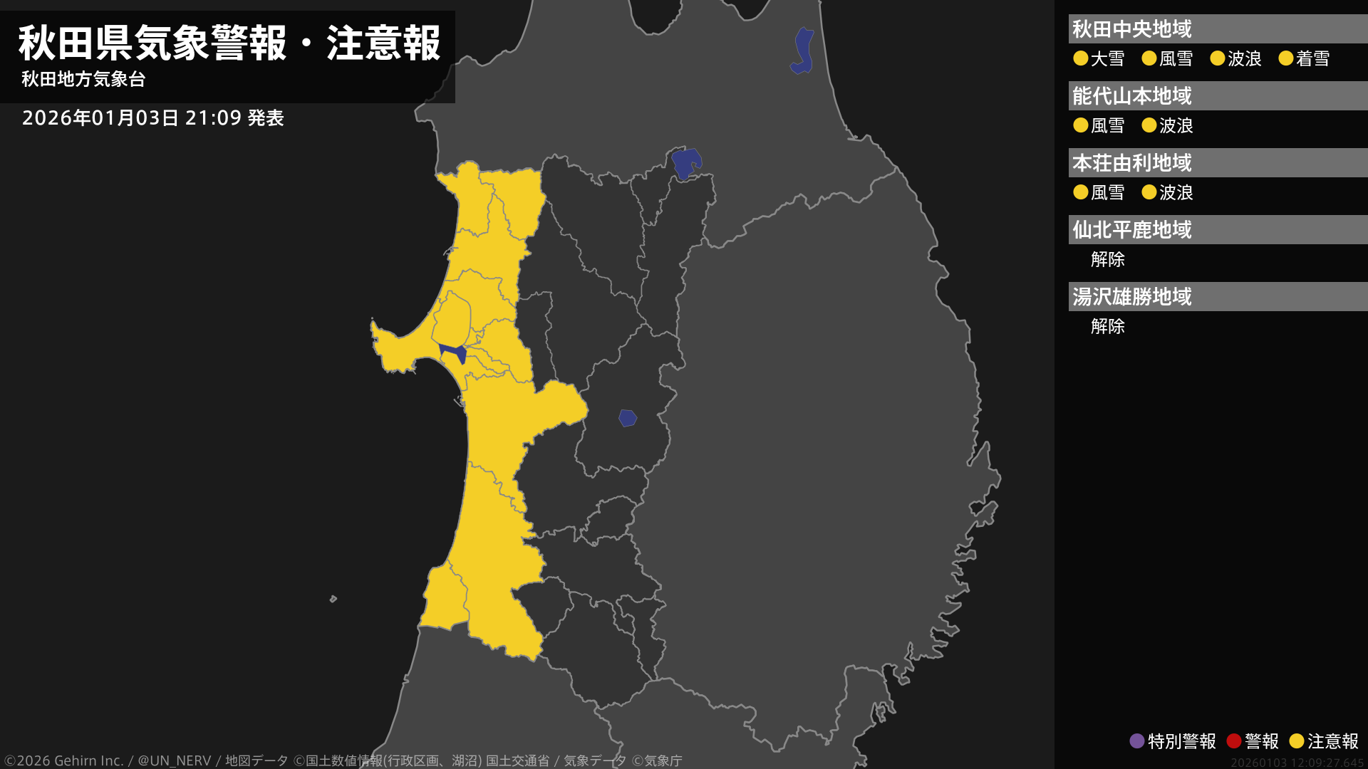 【大雪と雷及び突風に関する全般気象情報 2026年01月03日 05:21】