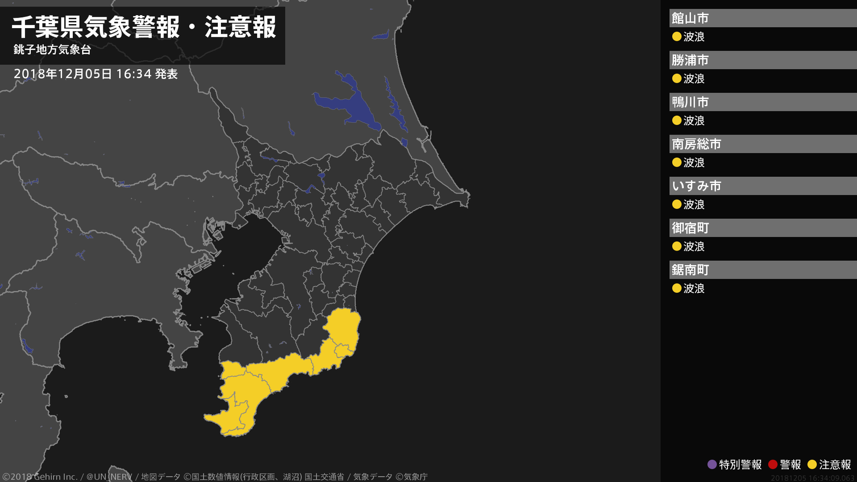 【千葉県 気象警報・注意報 2018年12月05日 16:34】