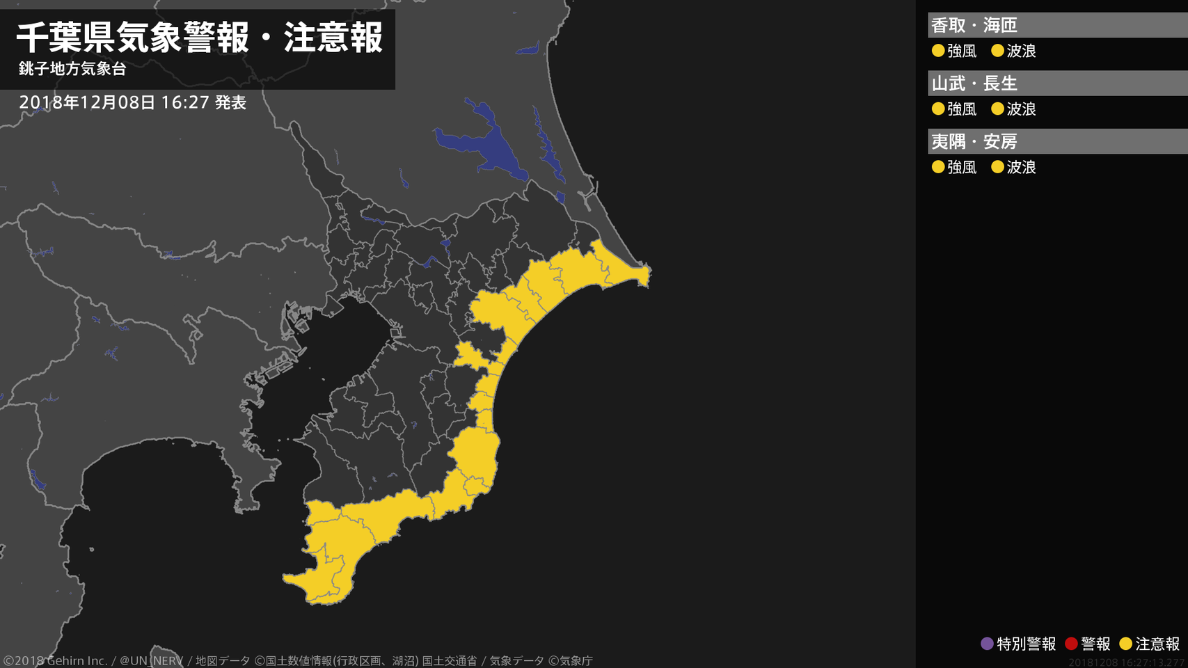 【千葉県 気象警報・注意報 2018年12月08日 16:27】