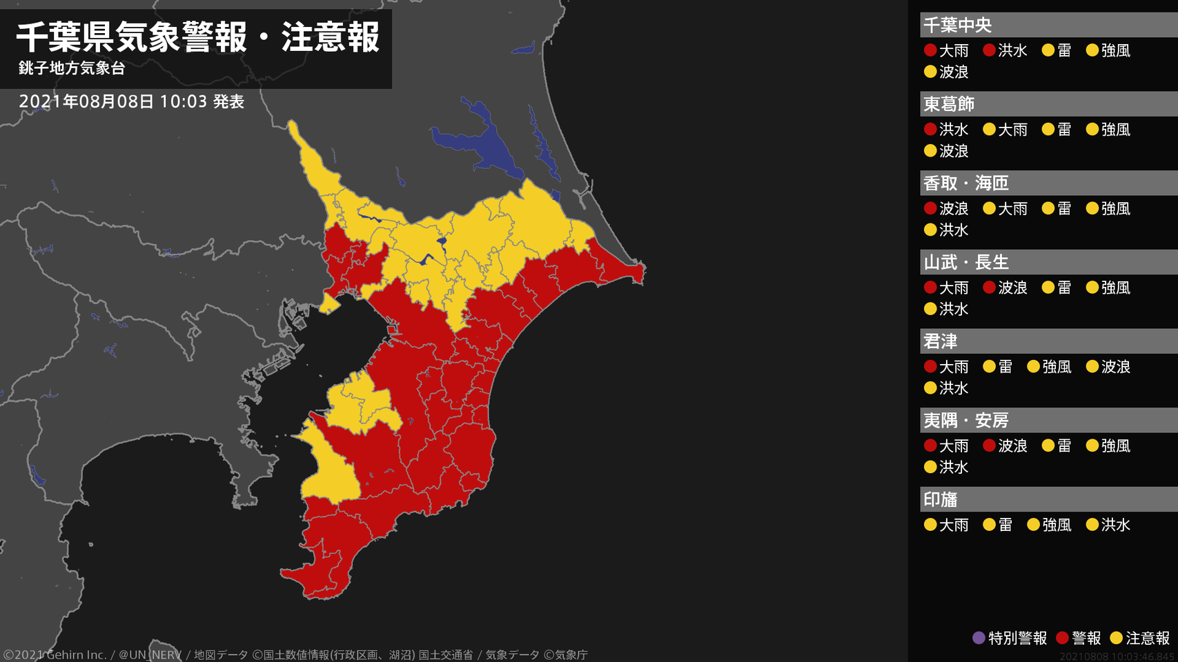 【千葉県 気象警報・注意報 2021年08月08日 10:03】