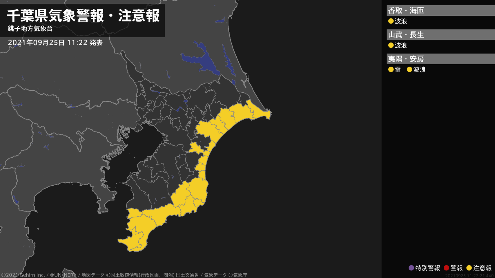 【千葉県 気象警報・注意報 2021年09月25日 11:22】
