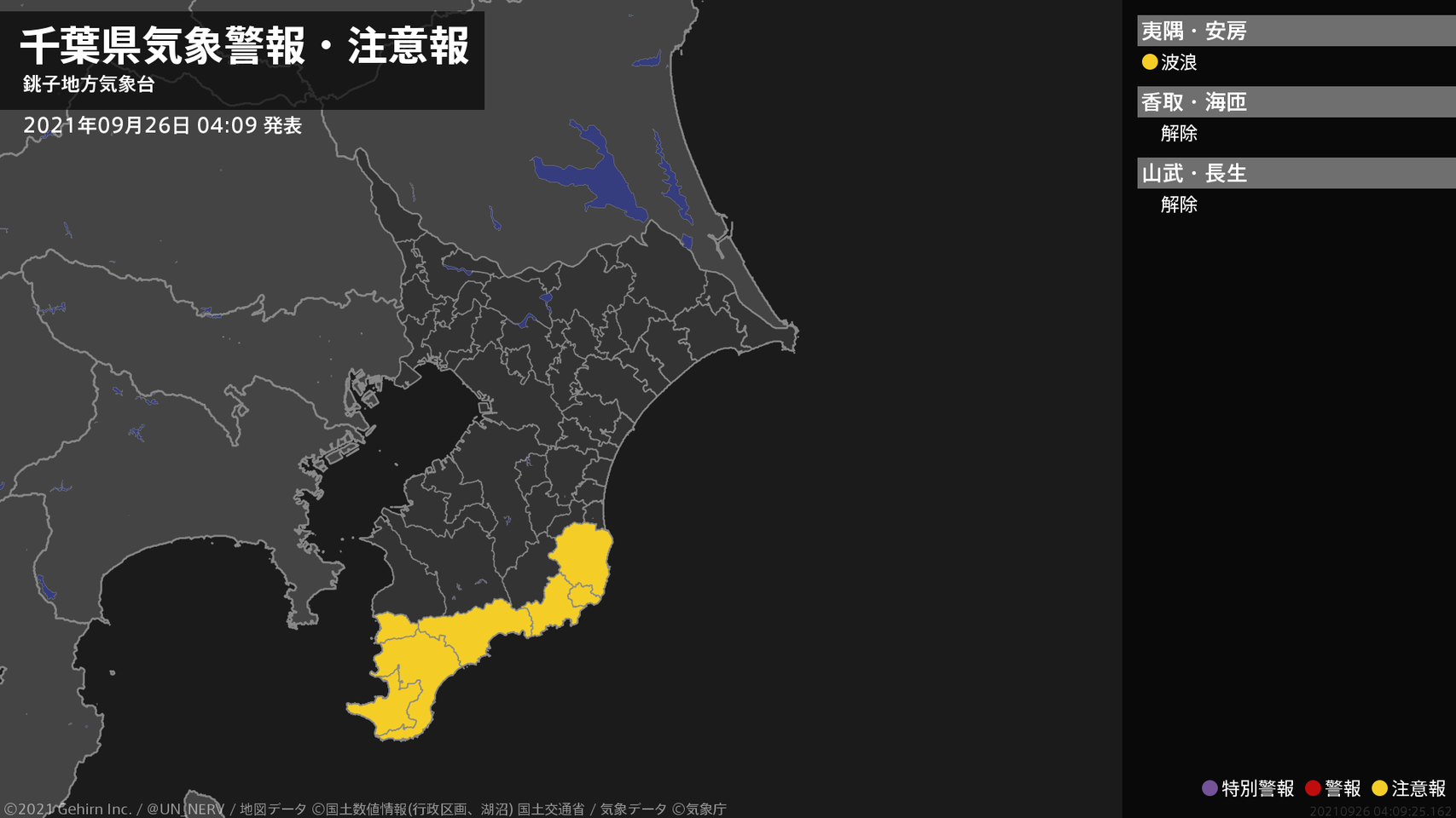 【千葉県 気象警報・注意報 2021年09月26日 04:09】