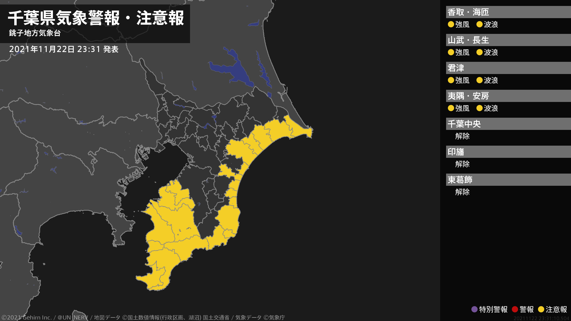【暴風と高波及び大雨に関する全般気象情報 2021年11月23日 04:48】