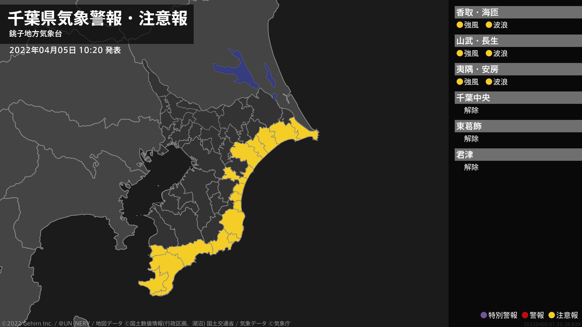 【千葉県 気象警報・注意報 2022年04月05日 10:20】