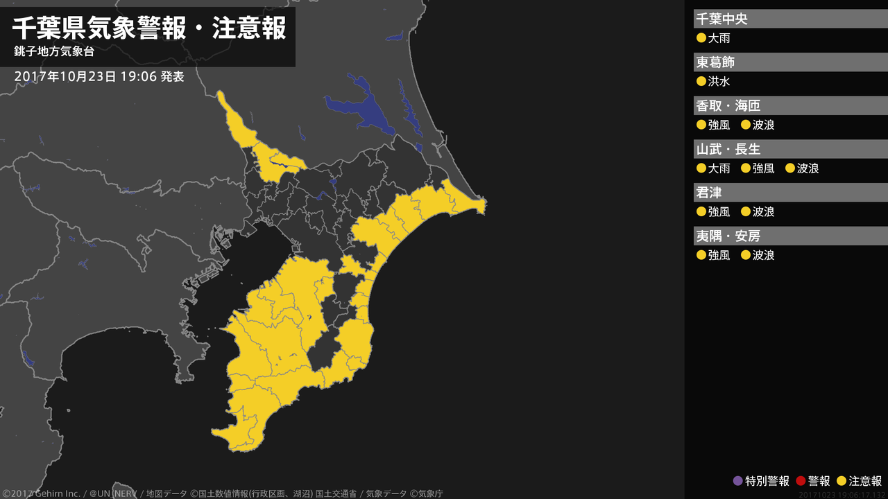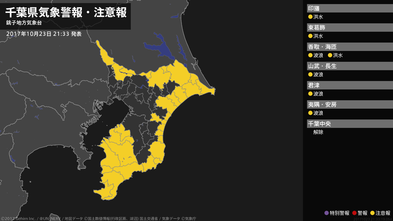 【千葉県 気象警報(解除) 2017年10月23日 19:06】