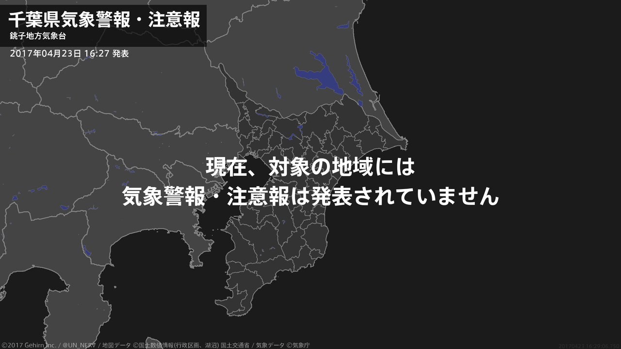 【千葉県 気象警報・注意報 2017年04月20日 16:27】