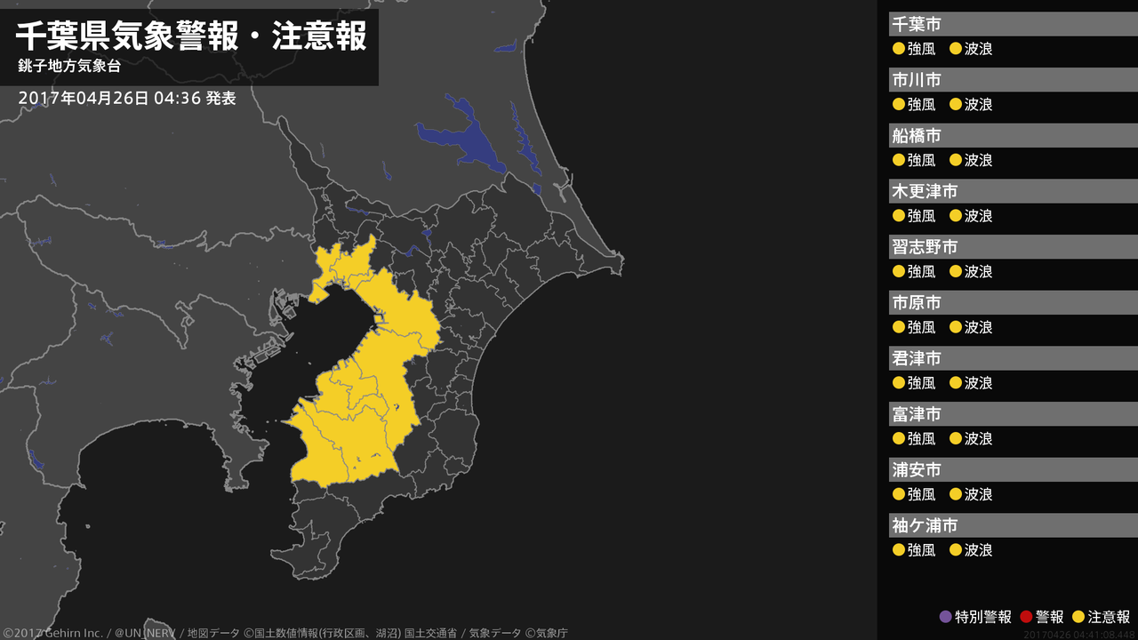 【千葉県 気象警報・注意報 2017年04月20日 04:36】