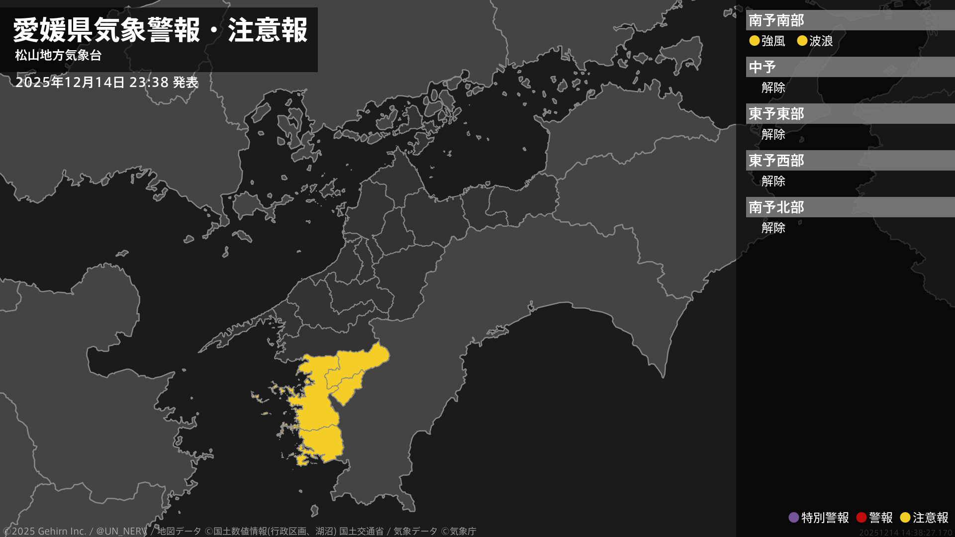 【暴風雪と高波及び大雪に関する全般気象情報 2025年12月14日 05:08】