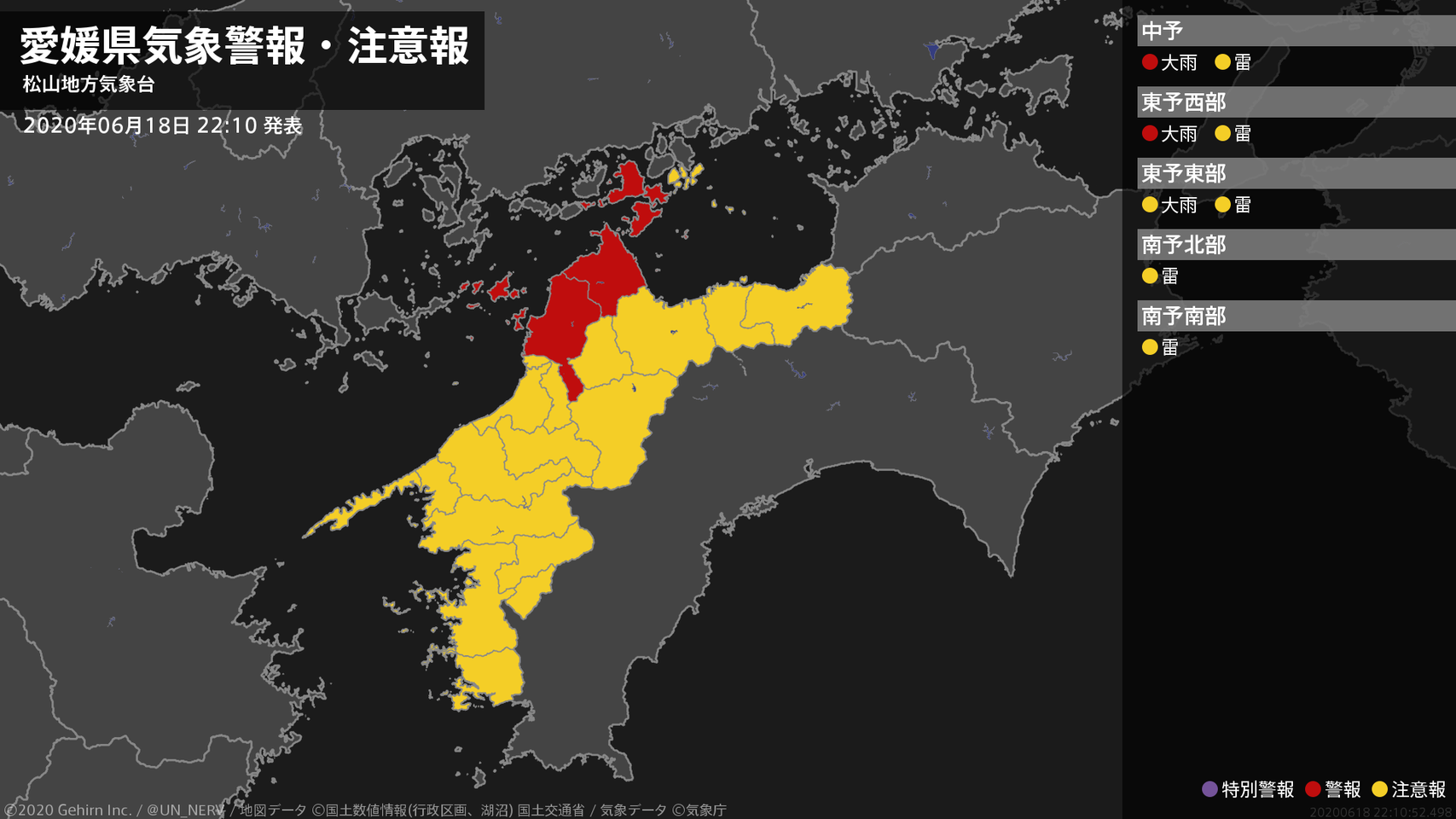 【愛媛県 気象警報 2020年06月18日 22:10】