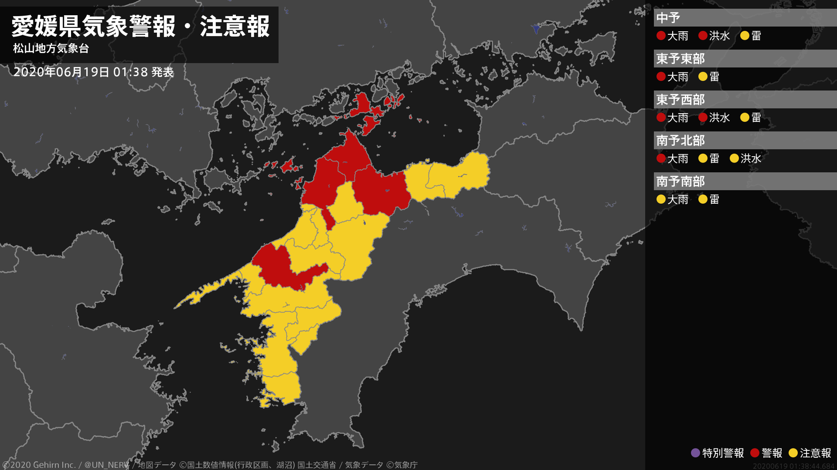 【愛媛県 気象警報 2020年06月19日 01:38】