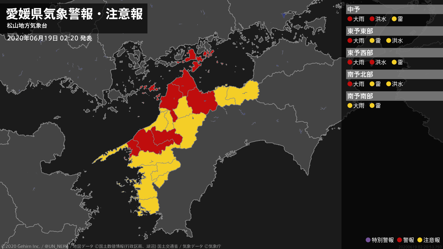 【愛媛県 気象警報 2020年06月19日 02:20】