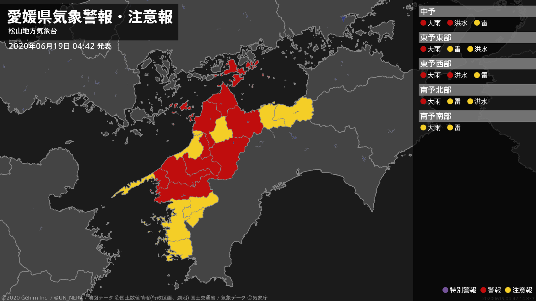 【愛媛県 気象警報 2020年06月19日 04:42】