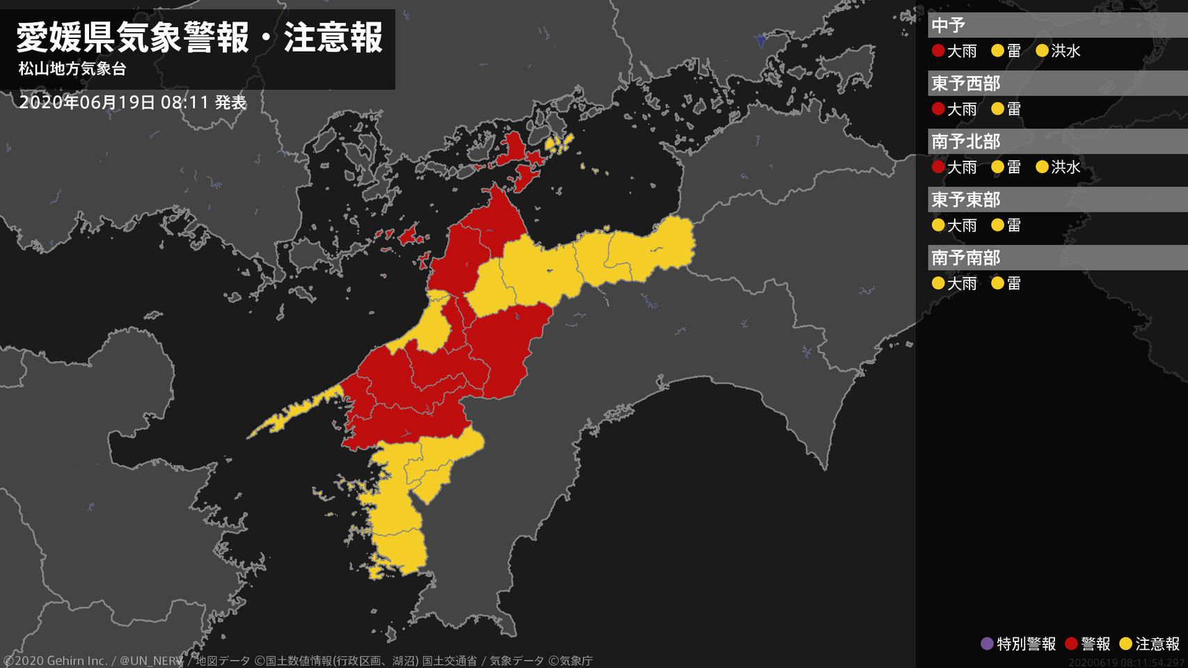 【愛媛県 気象警報 2020年06月19日 08:11】