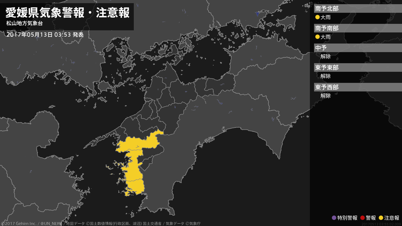 【愛媛県 気象警報・注意報 2017年05月13日 03:55】