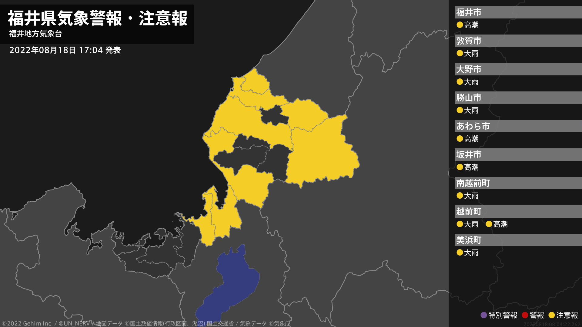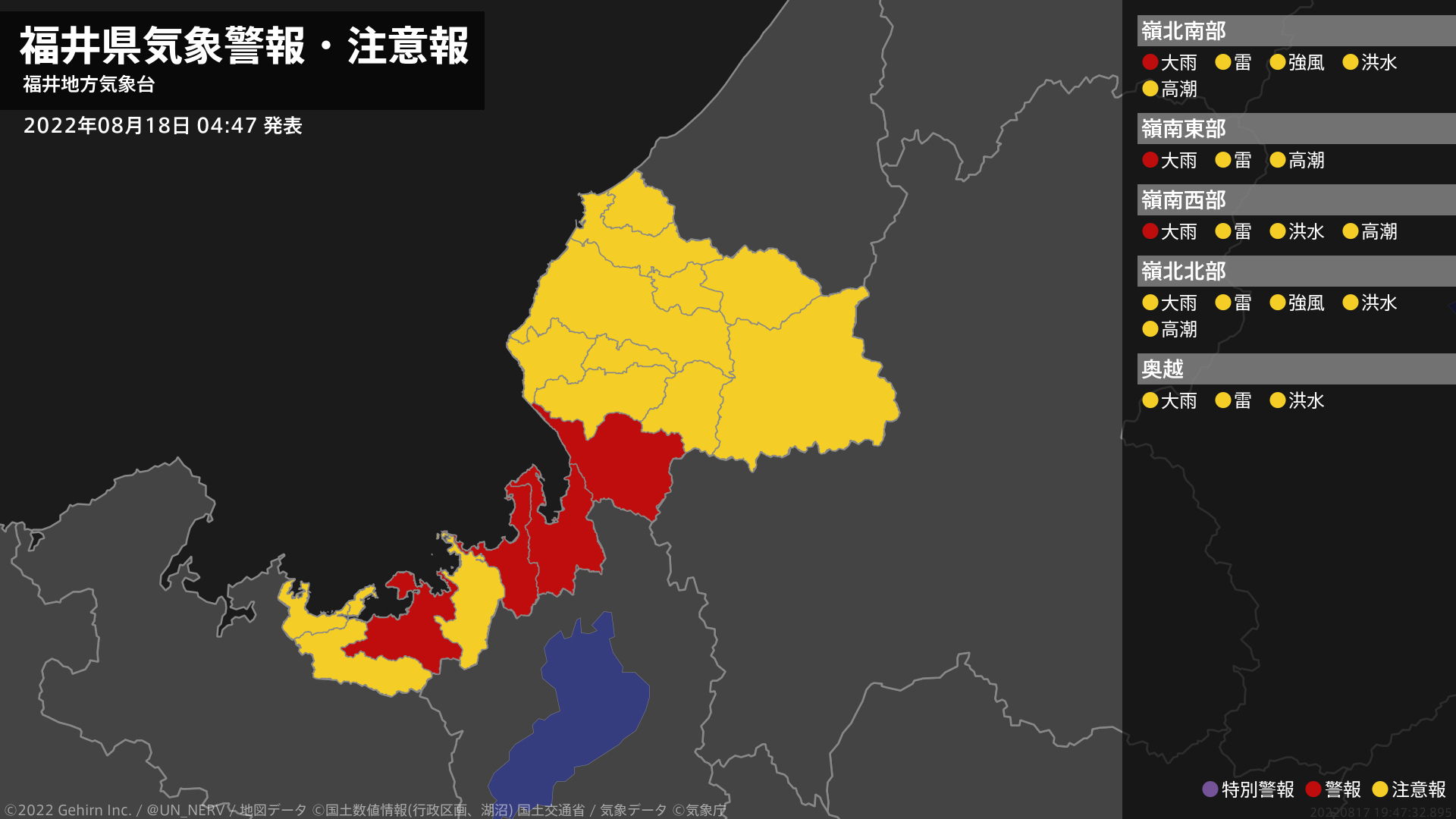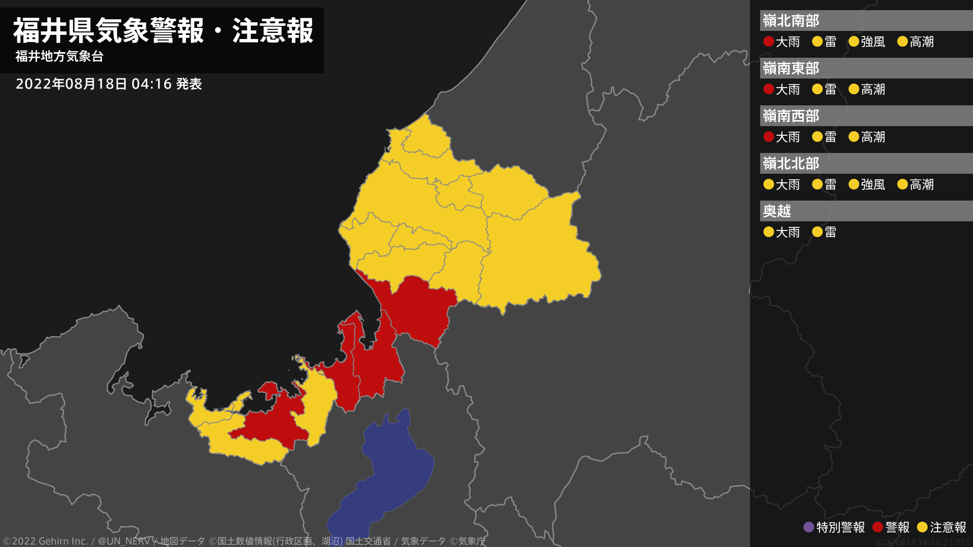 【大雨と雷及び突風に関する全般気象情報 2022年08月18日 16:57】
