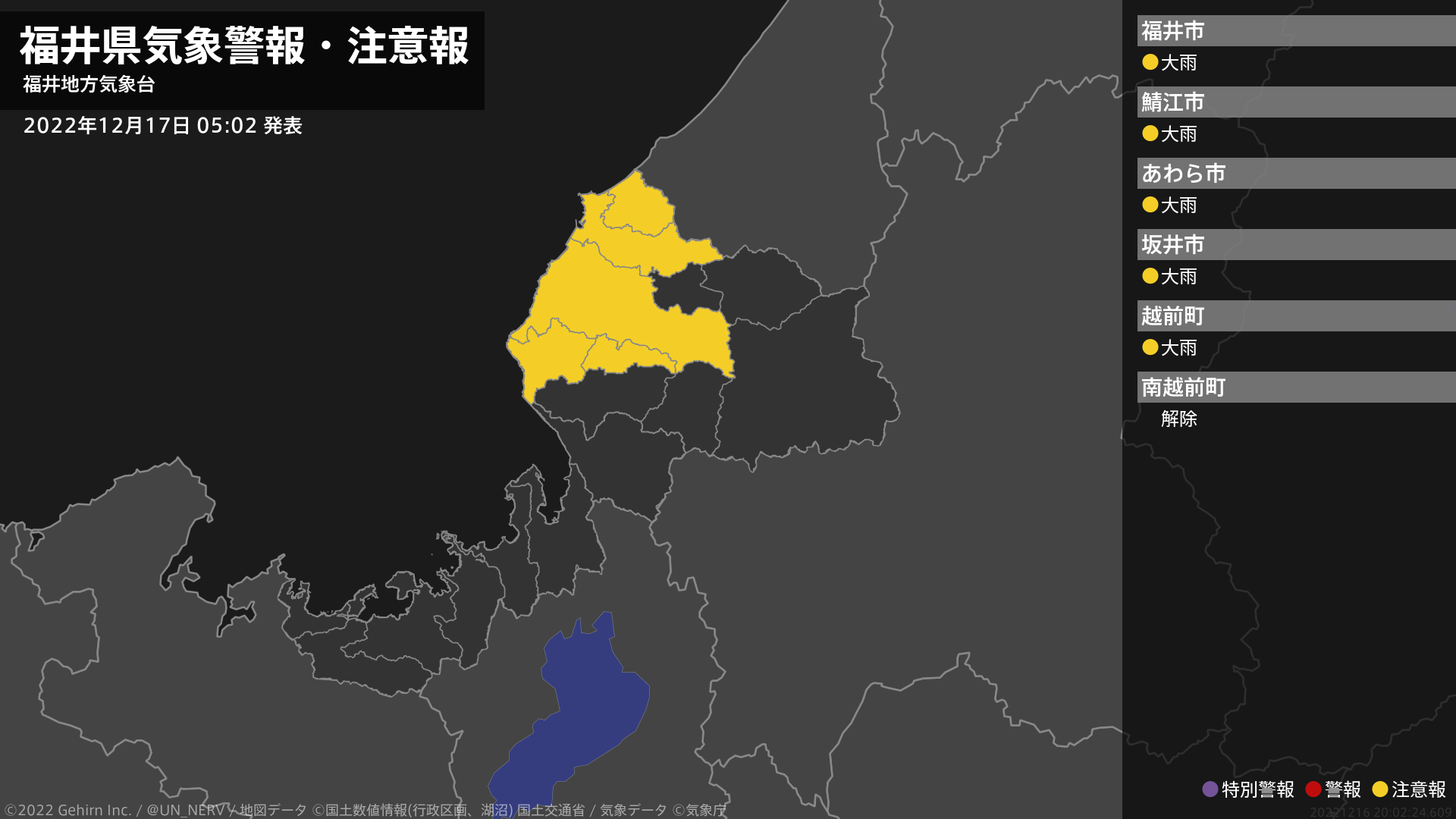 【福井県 気象警報・注意報 2022年12月17日 05:02】