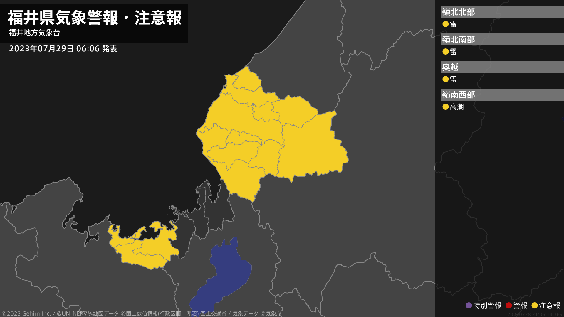 【福井県 気象警報・注意報 2023年07月29日 06:06】