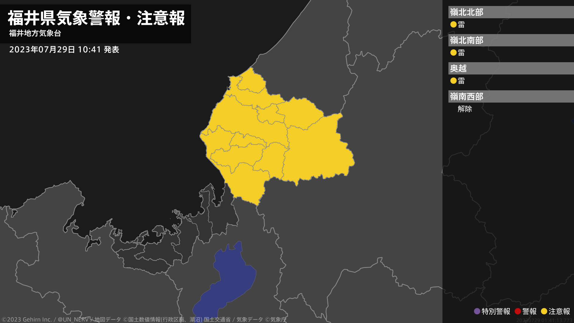 【福井県 気象警報・注意報 2023年07月29日 10:41】