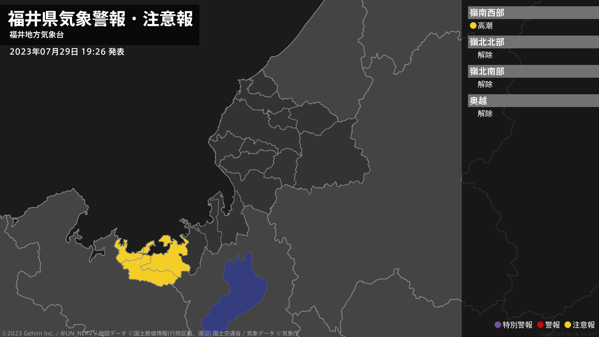 【福井県 気象警報・注意報 2023年07月29日 19:26】