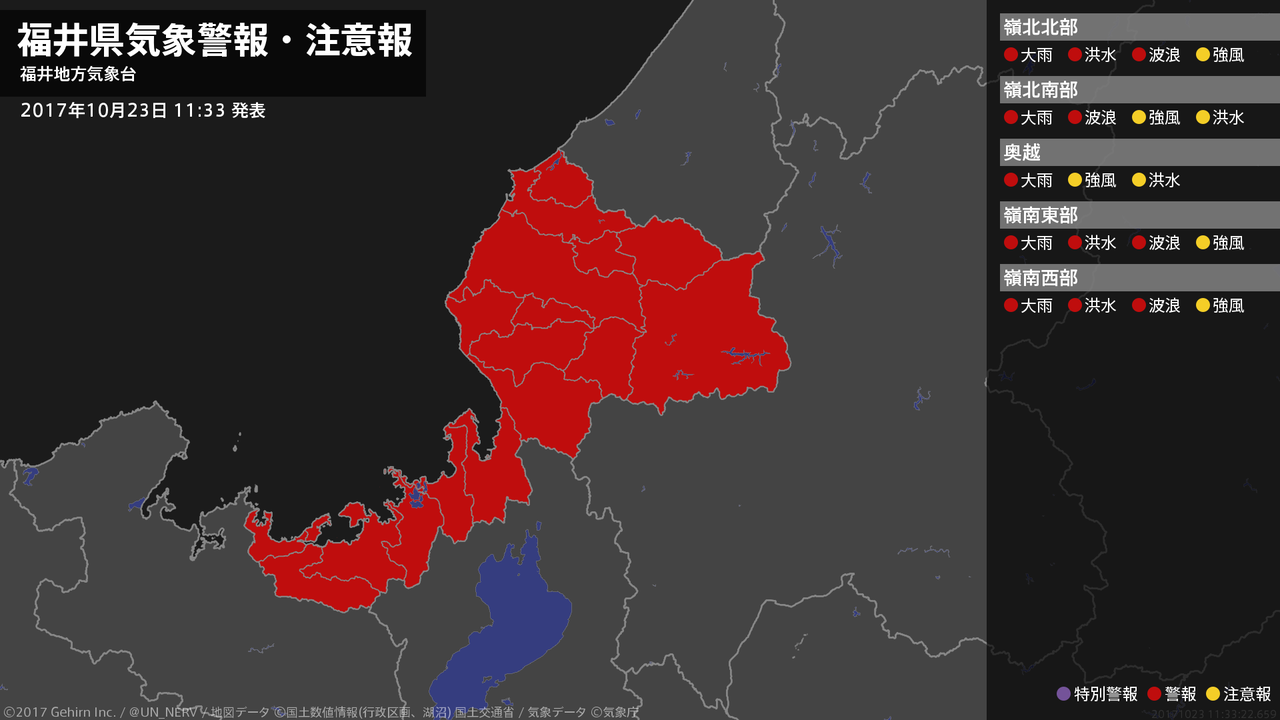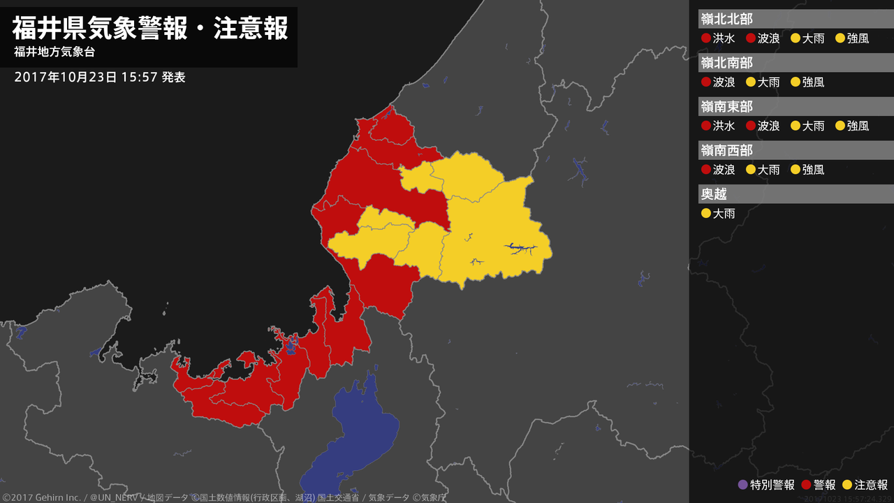 【福井県 気象警報(解除) 2017年10月23日 20:41】