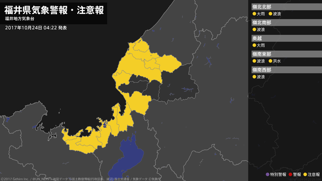 【福井県 気象警報・注意報 2017年10月24日 04:22】