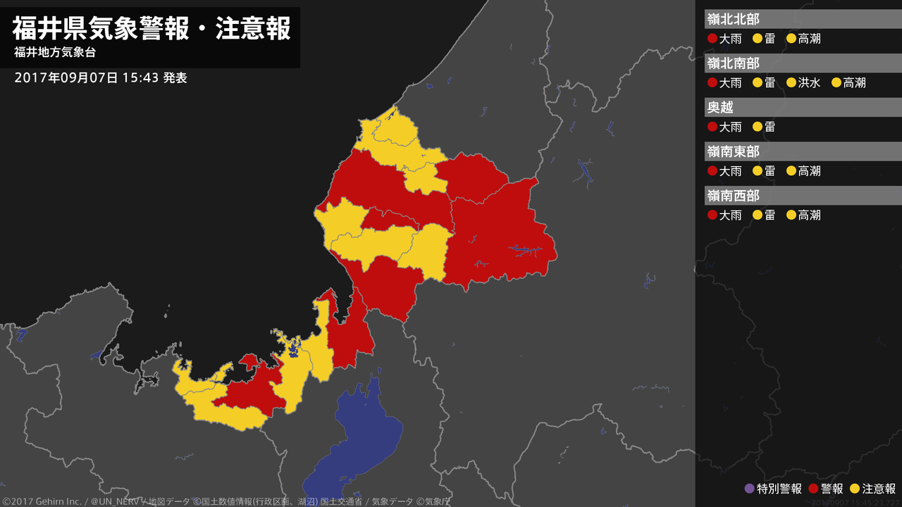【福井県 気象警報 2017年09月07日 15:45】