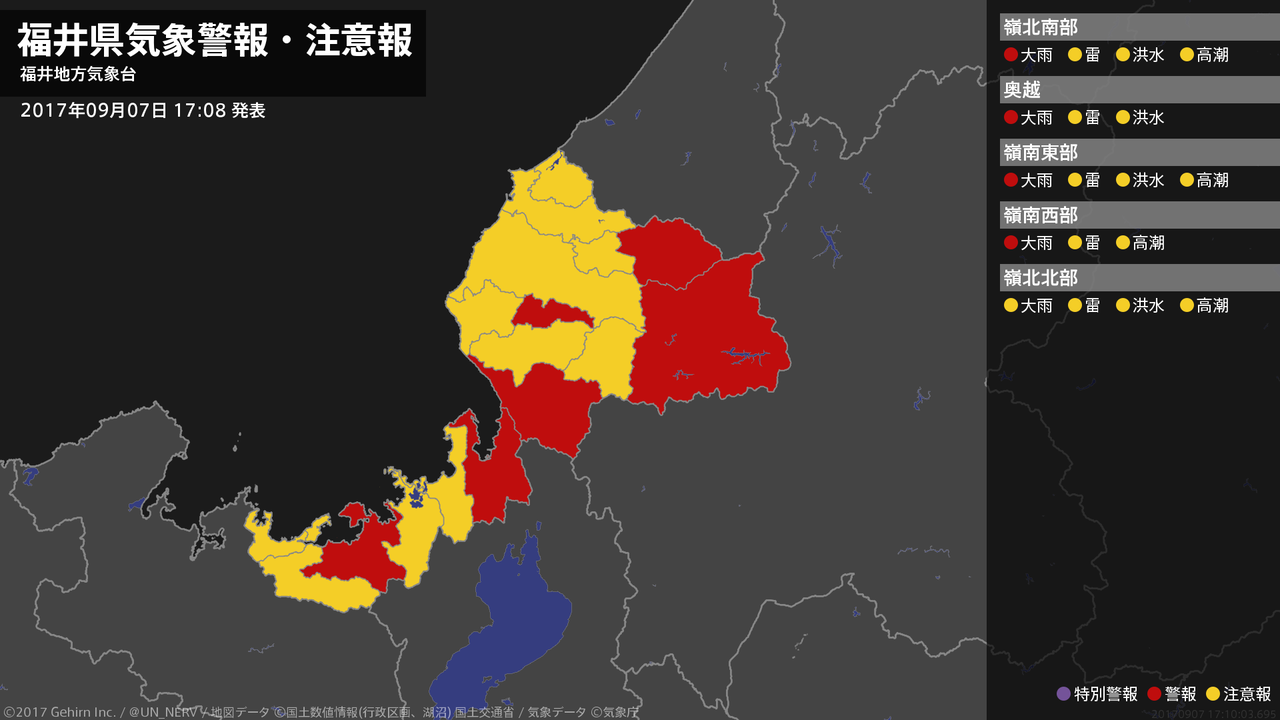 【福井県 気象警報 2017年09月07日 17:10】