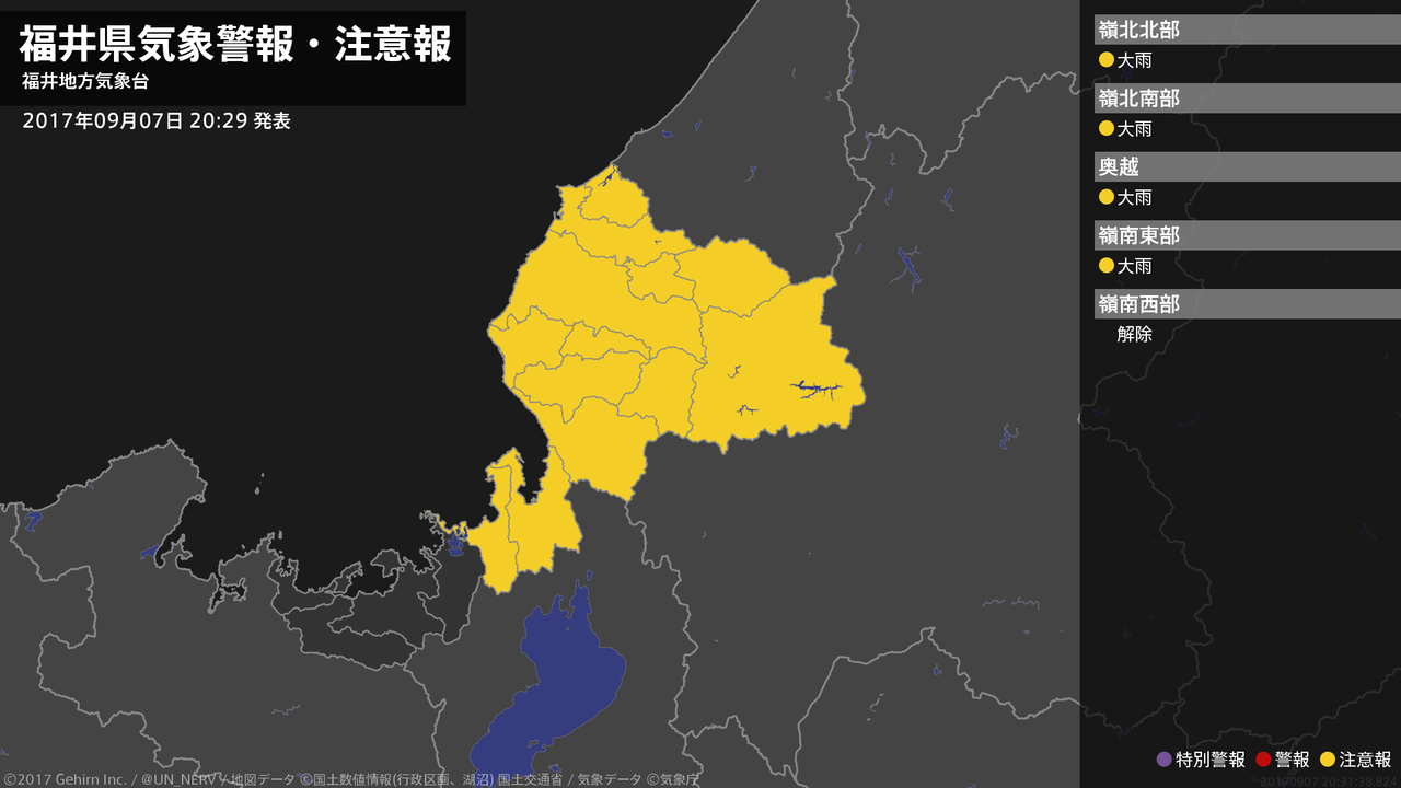 【福井県 気象警報(解除) 2017年09月07日 20:31】
