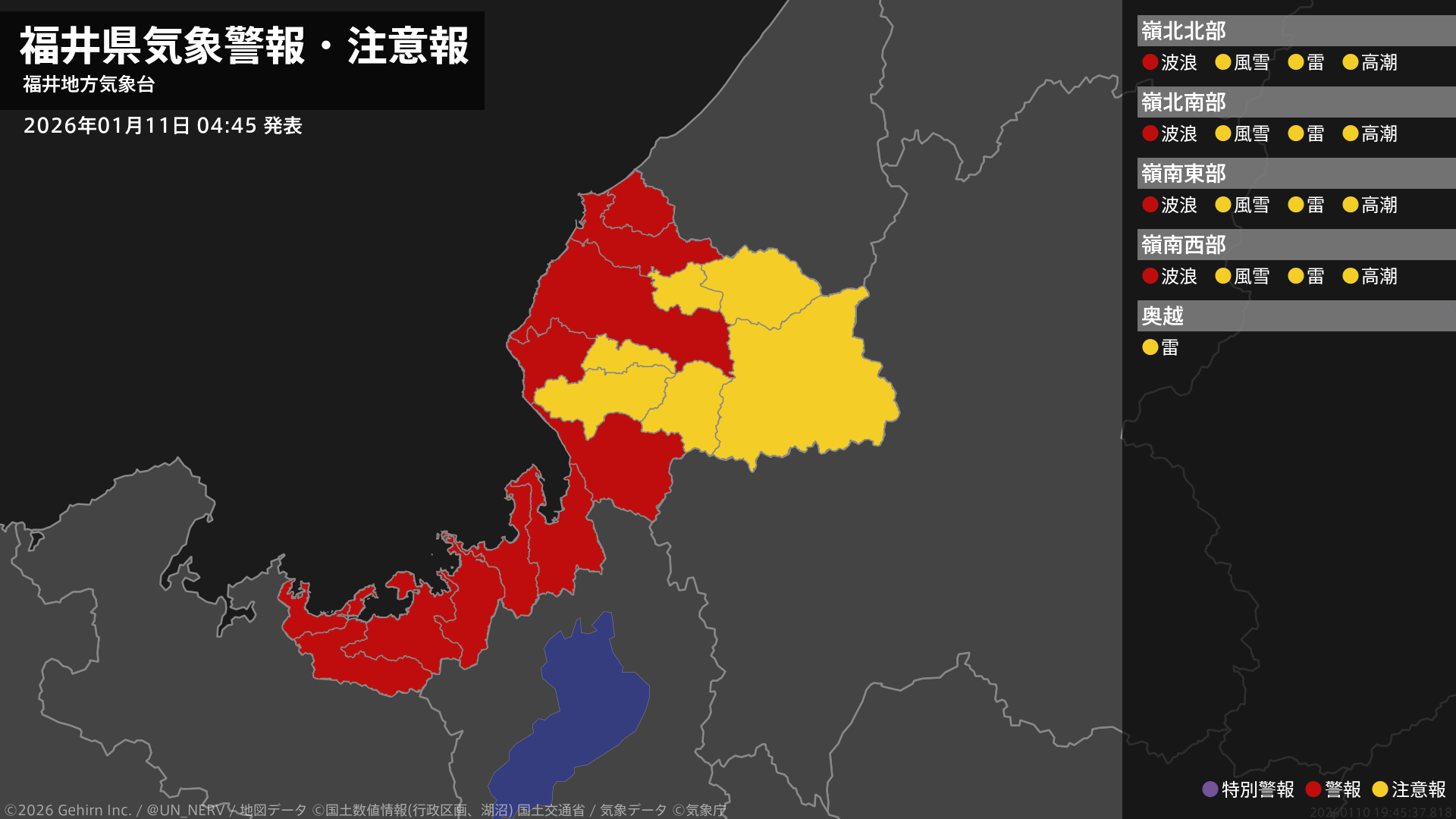 【暴風雪と高波及び大雪に関する全般気象情報 2026年01月11日 05:13】