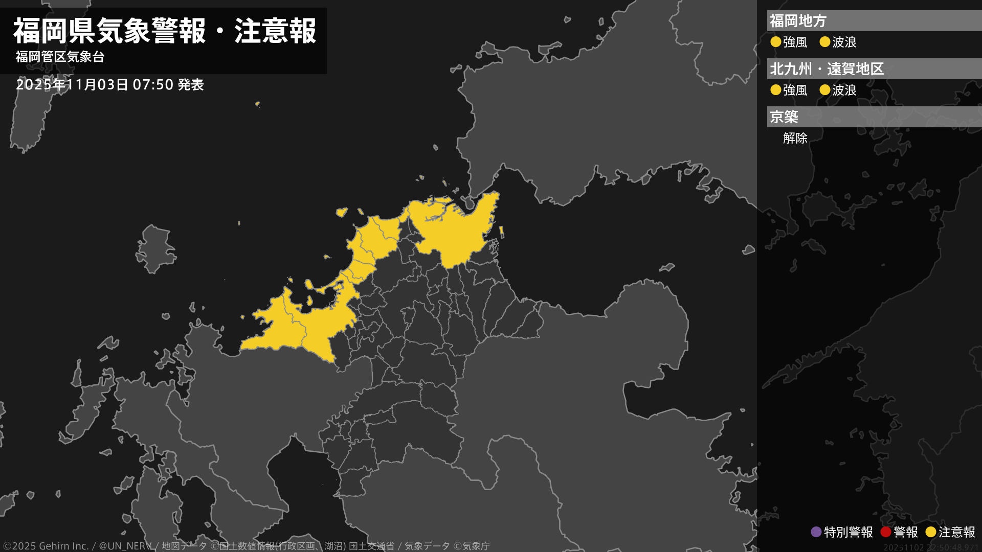 【大雨と雷及び突風に関する全般気象情報 2025年11月03日 05:01】