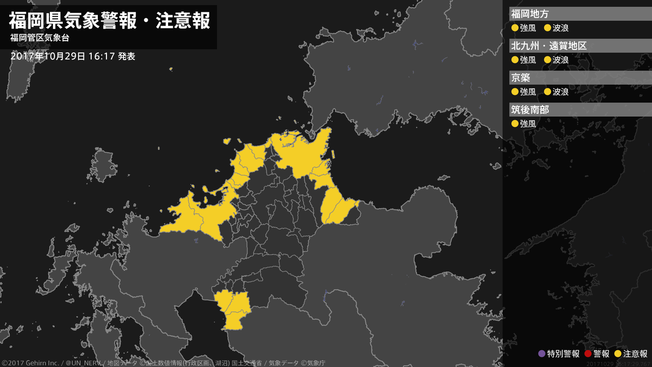 【福岡県 気象警報・注意報 2017年10月29日 16:17】
