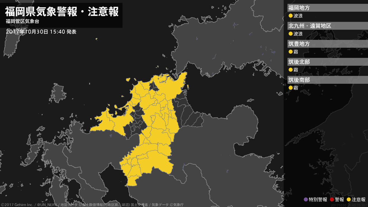 【福岡県 気象警報・注意報 2017年10月30日 15:40】