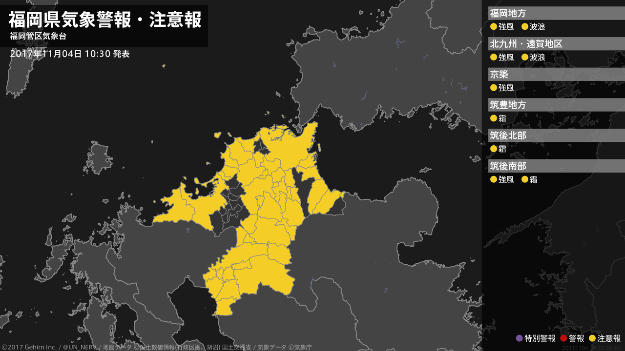 【福岡県 気象警報・注意報 2017年11月04日 10:30】