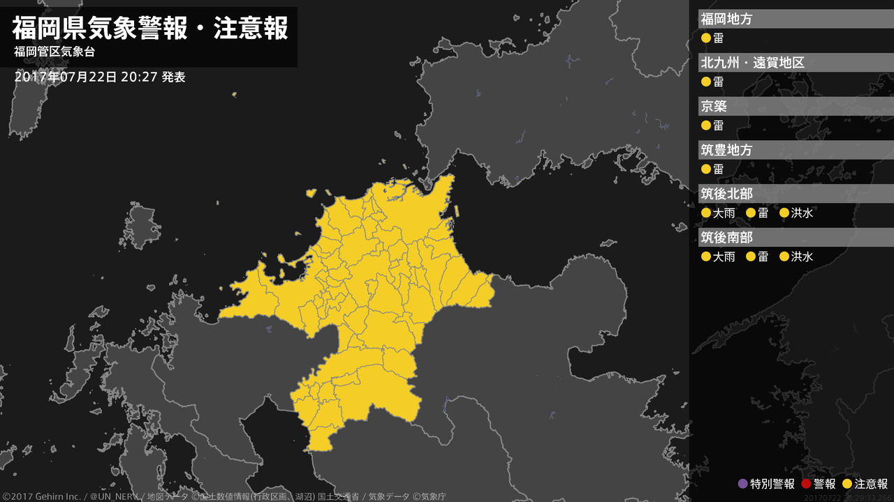【大雨と雷及び突風に関する全般気象情報 2017年07月22日 16:35】