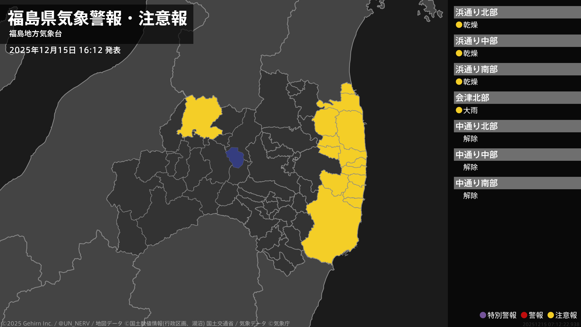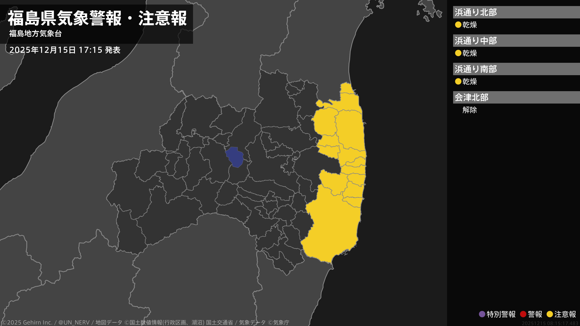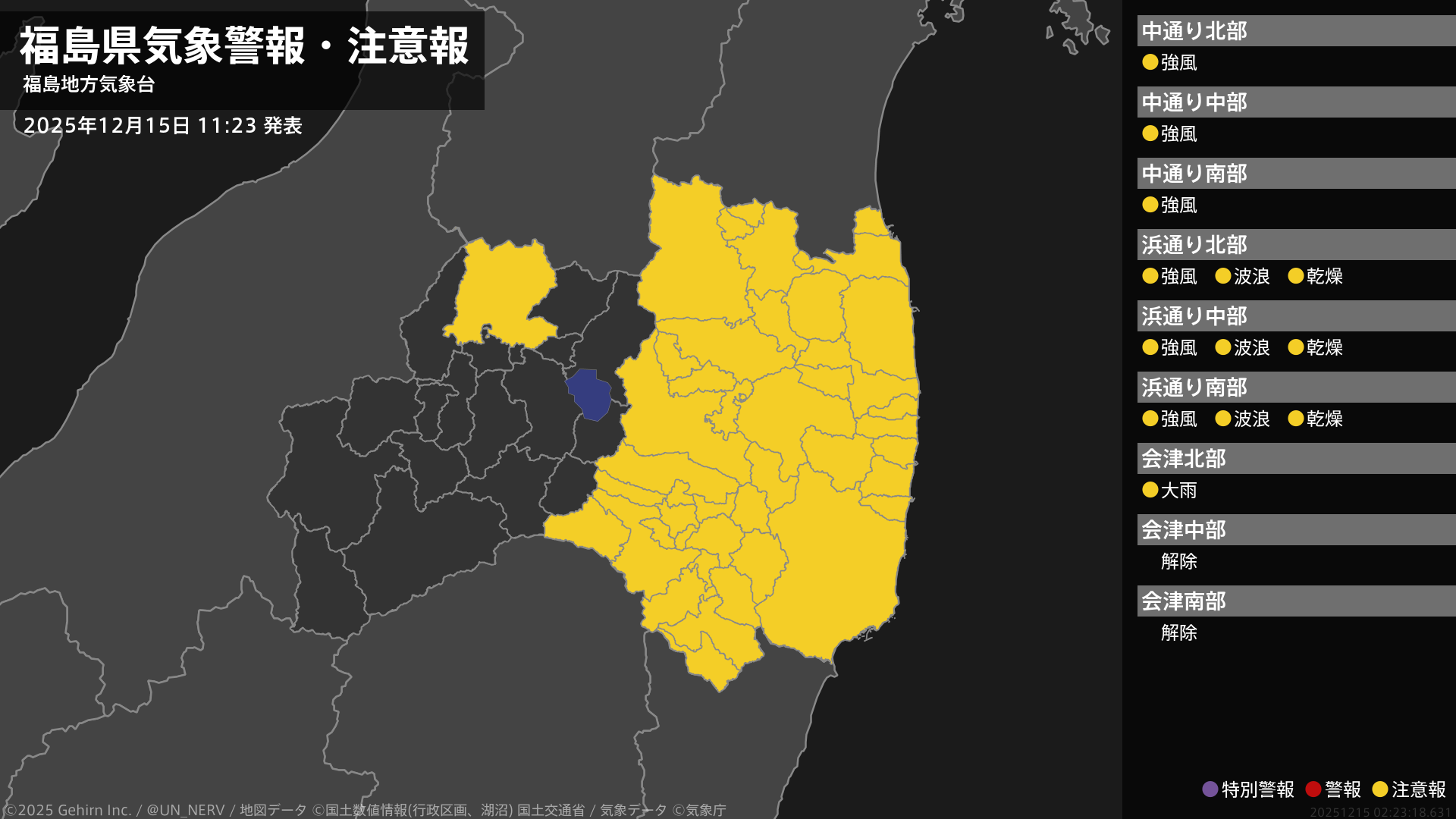【暴風雪と高波及び大雪に関する全般気象情報 2025年12月15日 05:12】