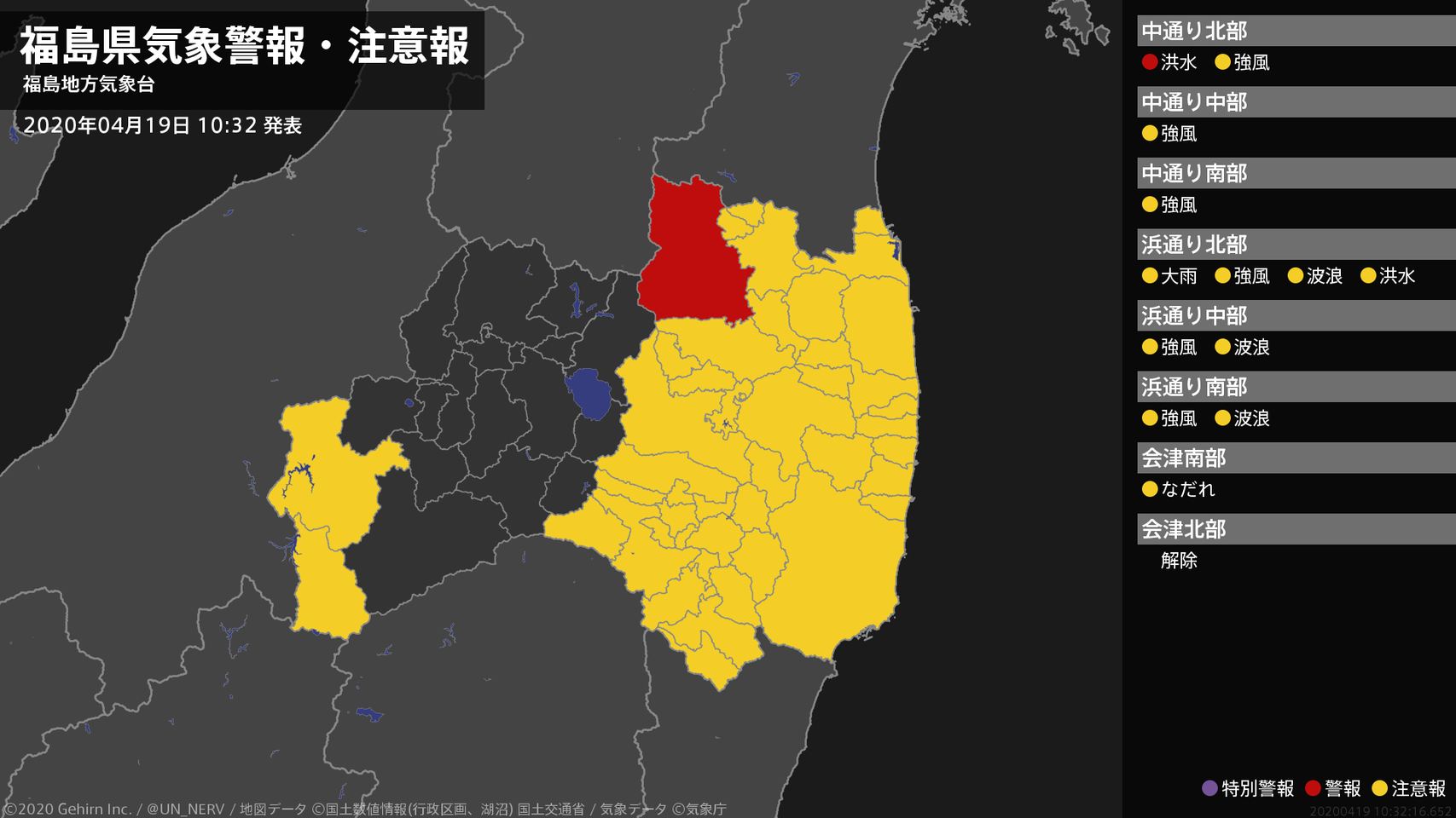 【福島県 気象警報・注意報 2020年04月19日 10:32】