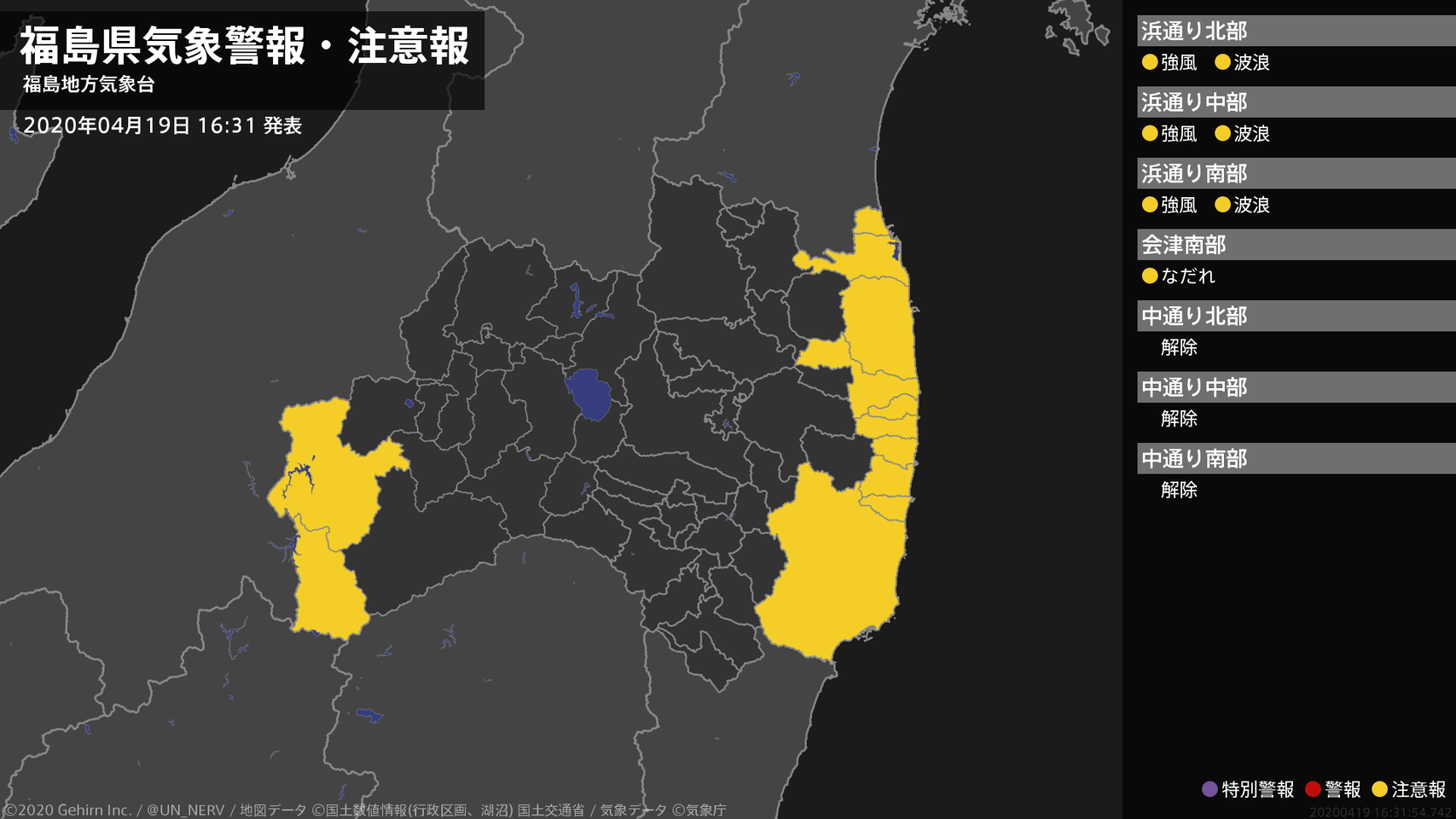 【福島県 気象警報・注意報 2020年04月19日 16:31】