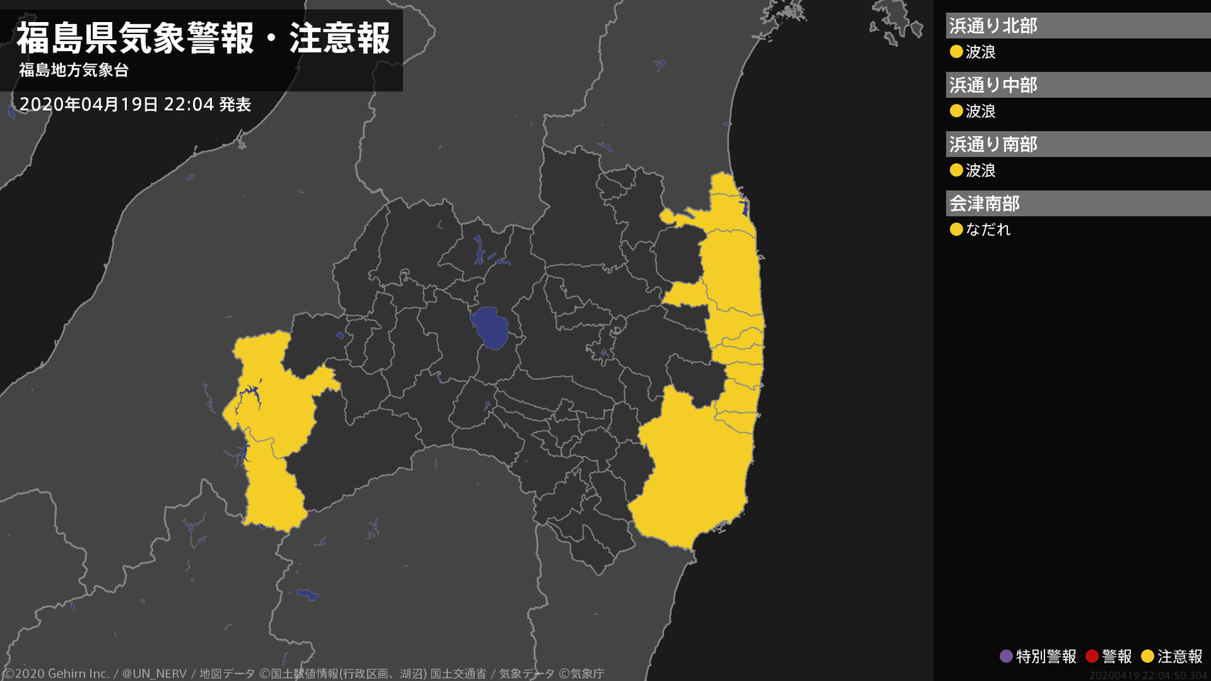 【福島県 気象警報・注意報 2020年04月19日 22:04】