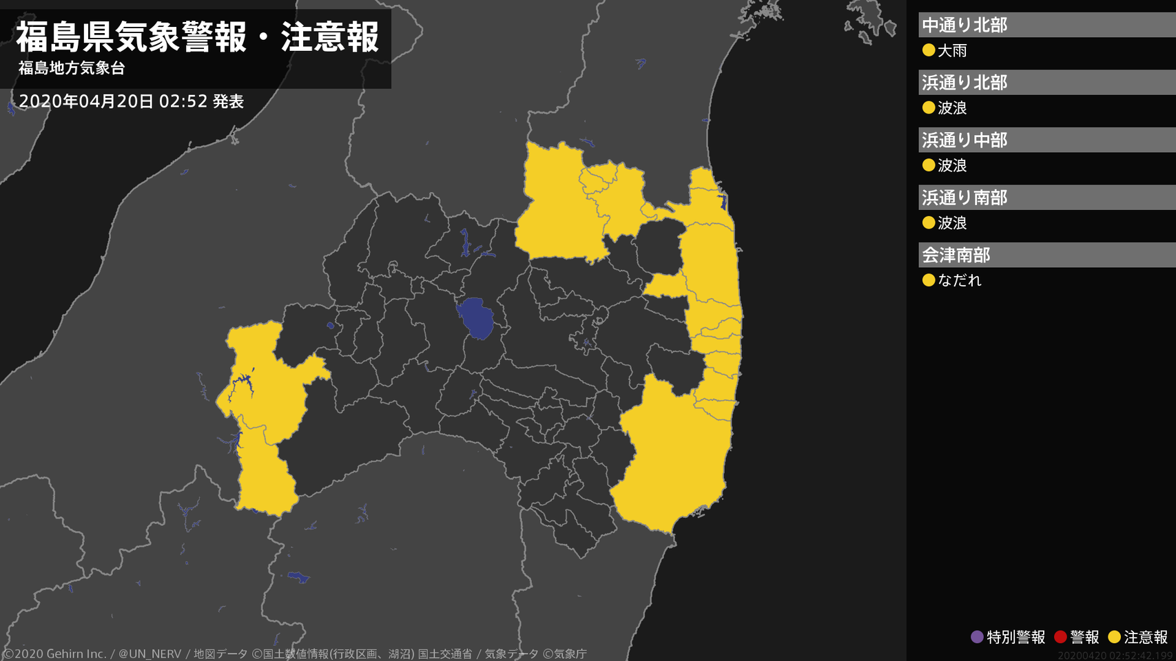 【福島県 気象警報・注意報 2020年04月20日 02:52】