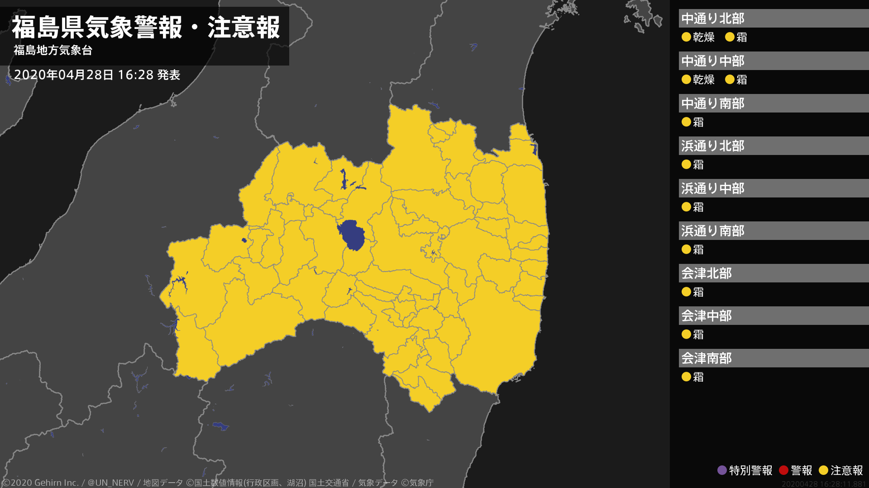 【福島県 気象警報・注意報 2020年04月26日 23:04】注意報を解除します。#気象警報注意報 #福島県