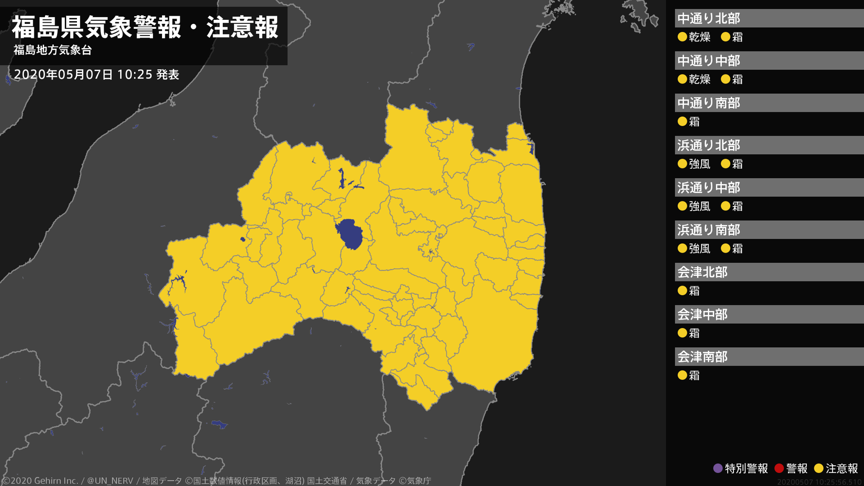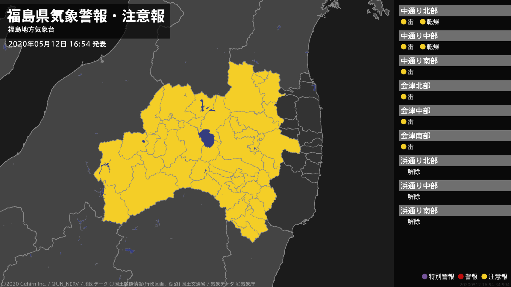 【福島県 気象警報・注意報 2020年05月06日 07:54】注意報を解除します。#気象警報注意報 #福島県