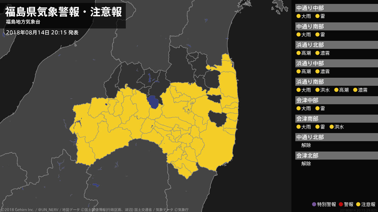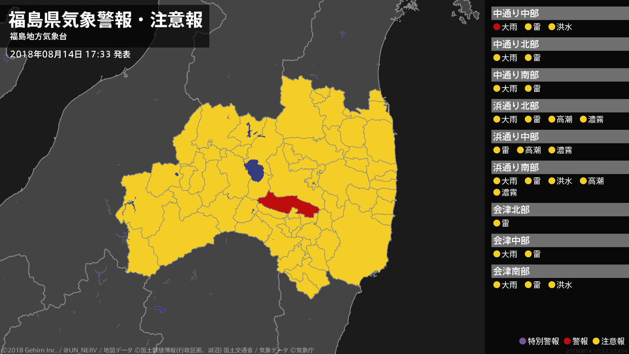 【大雨と雷及び突風に関する全般気象情報 2018年08月15日 16:39】