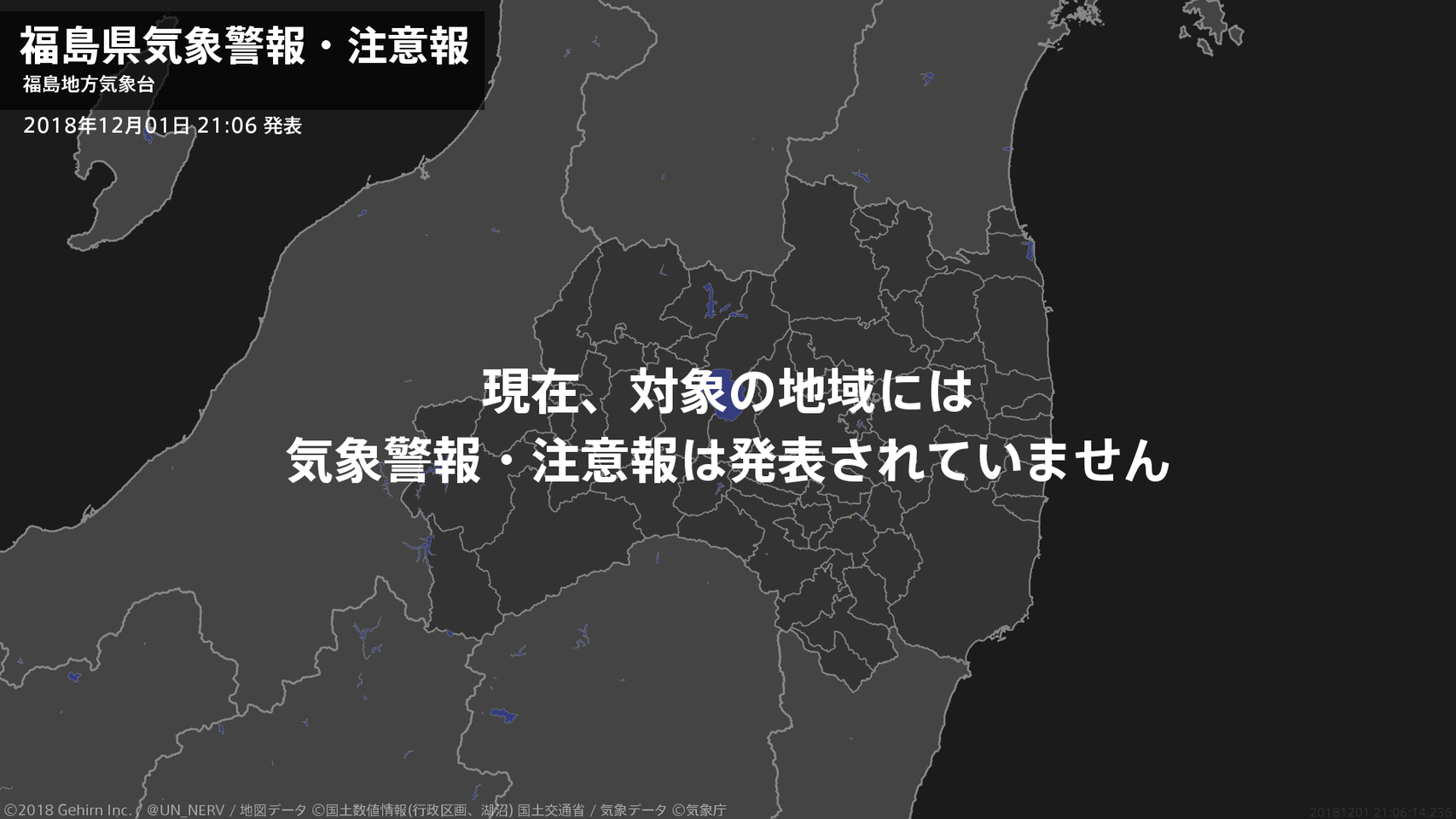 【福島県 気象警報・注意報 2018年12月01日 21:06】