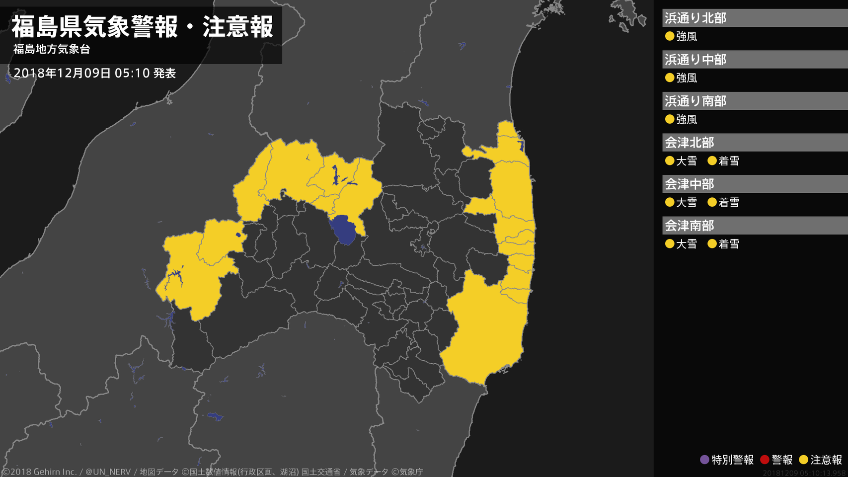 【福島県 気象警報・注意報 2018年12月10日 04:50】注意報を解除します。#気象警報注意報 #福島県