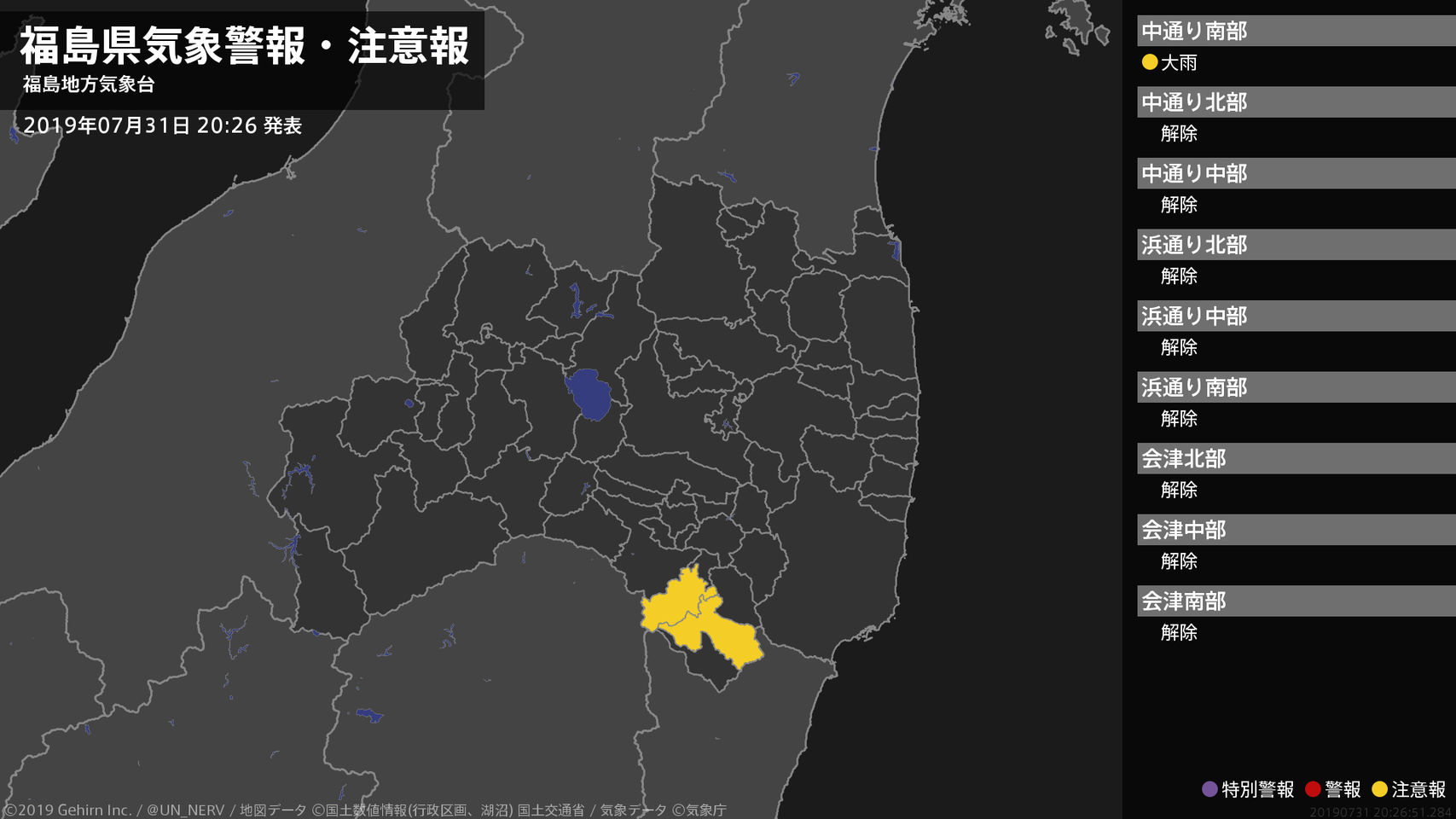 【福島県 気象警報・注意報 2019年07月31日 22:06】注意報を解除します。#気象警報注意報 #福島県