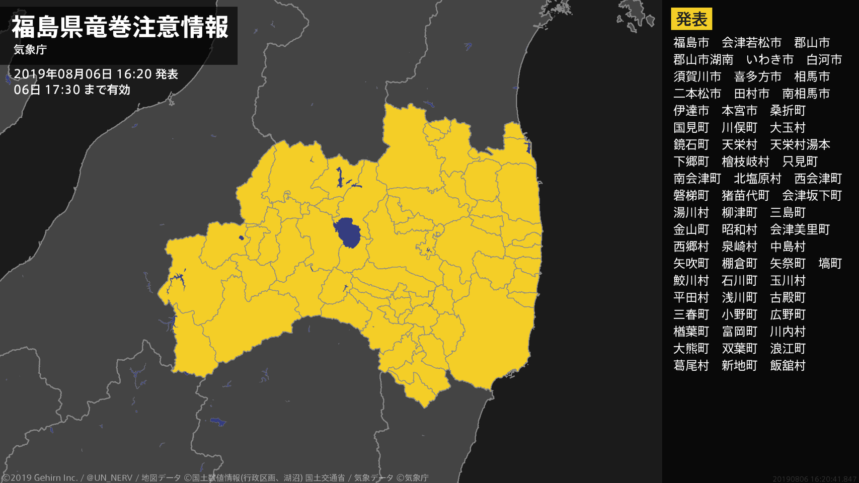 【福島県 気象警報(解除) 2019年08月06日 18:17】福島県に発表されていた気象警報はすべて解除されました。#気象警報 #福島県