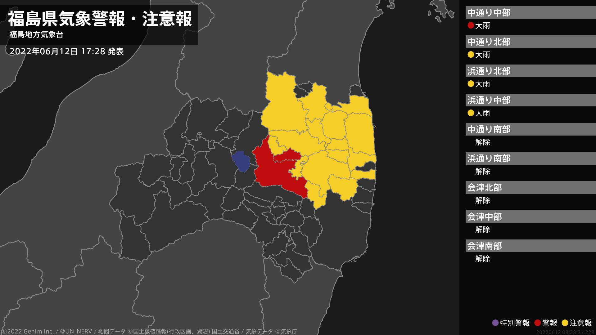 【福島県 気象警報・注意報 2022年06月13日 05:11】注意報を解除します。#気象警報注意報 #福島県