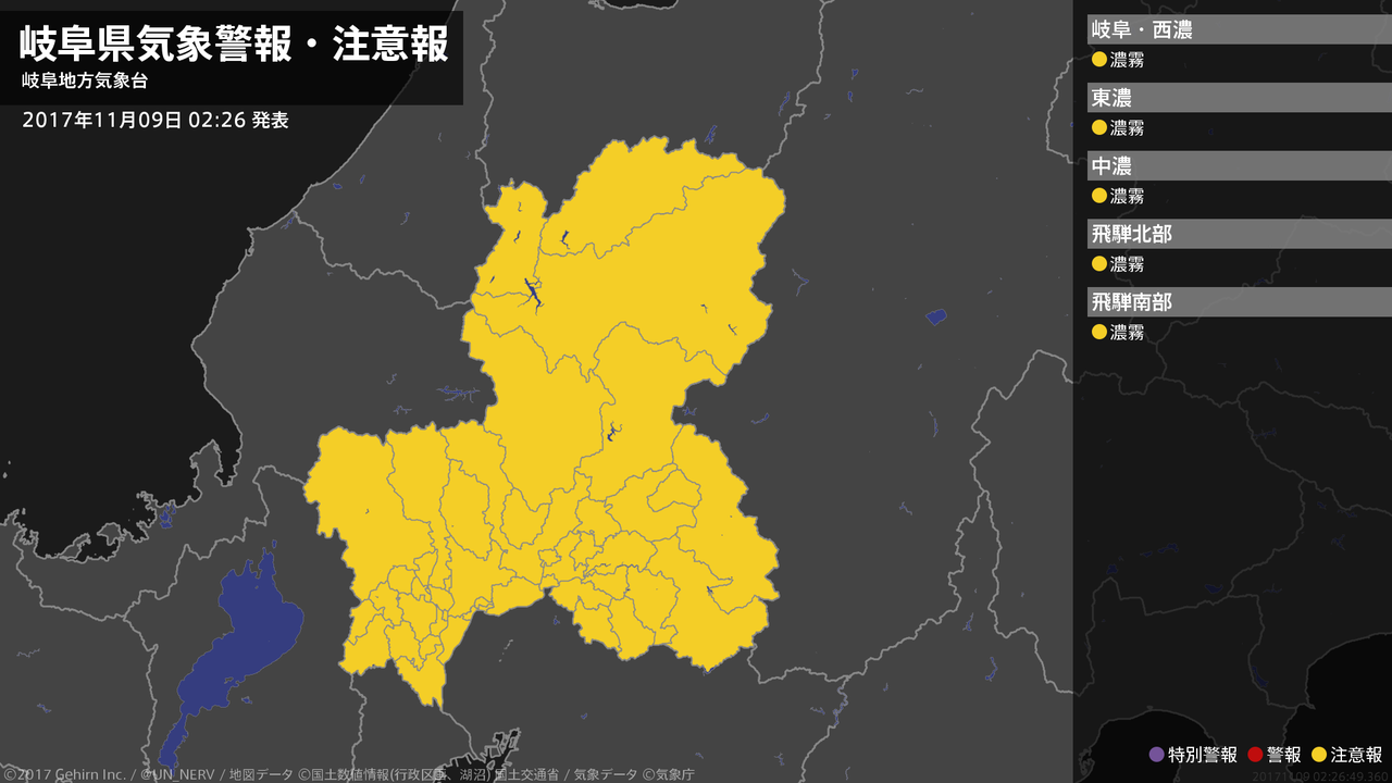 【岐阜県 気象警報・注意報 2017年11月09日 02:26】
