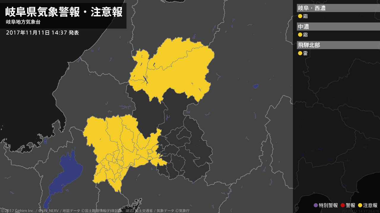【岐阜県 気象警報・注意報 2017年11月11日 14:37】