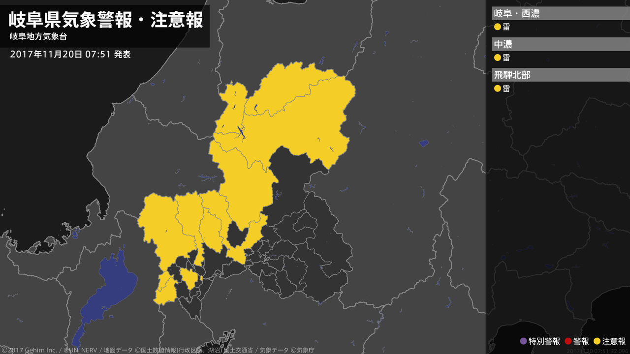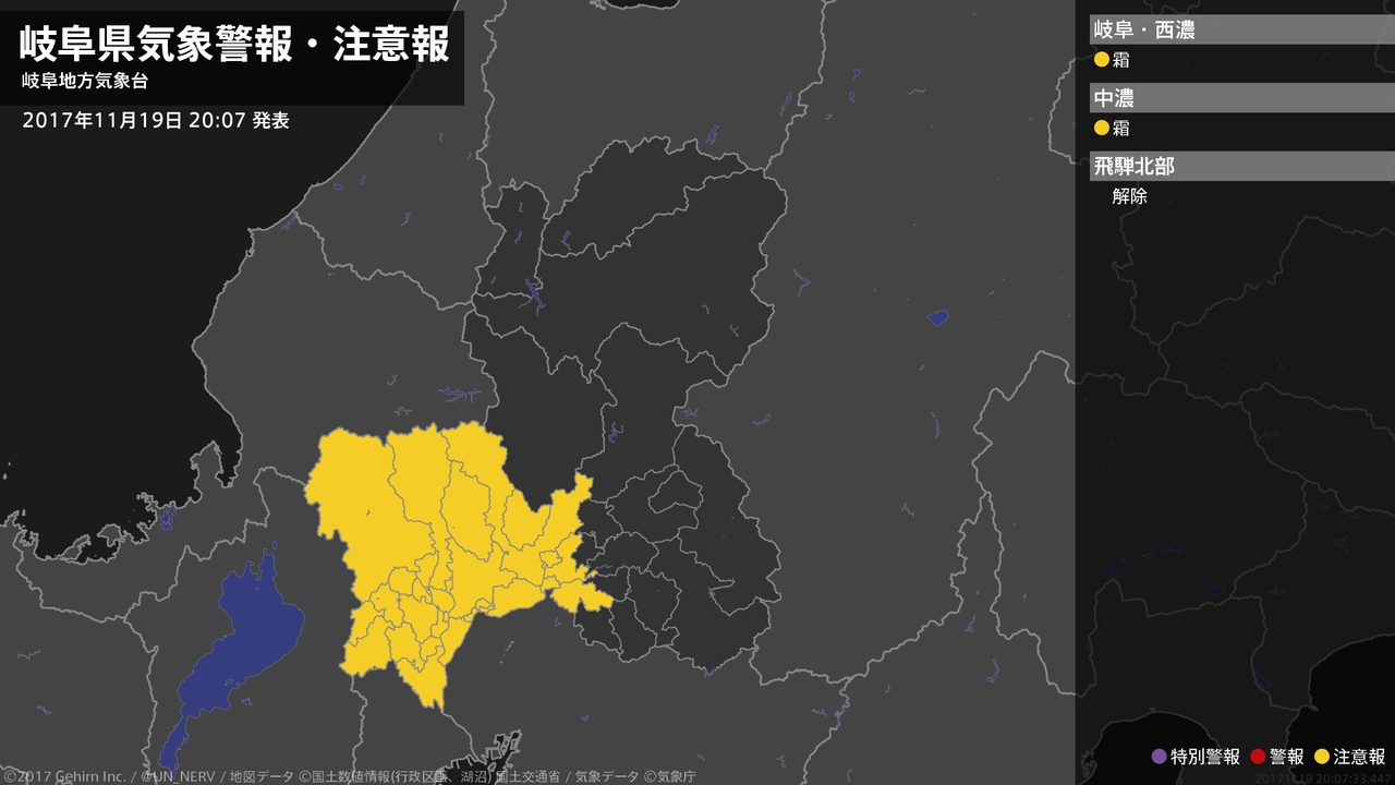 【岐阜県 気象警報・注意報 2017年11月20日 07:51】